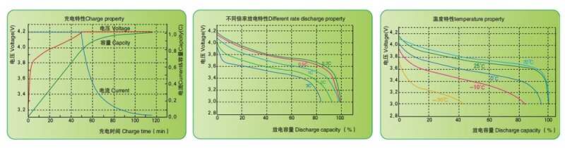 * 高溫充放電性能好,+70℃環境下放電容量>額定容量的98%;